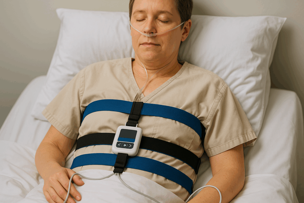 La polygraphie ventilatoire enregistre la respiration, les mouvements thoraciques/abdominaux, la saturation en oxygène et les ronflements, pour dépister les apnées du sommeil.